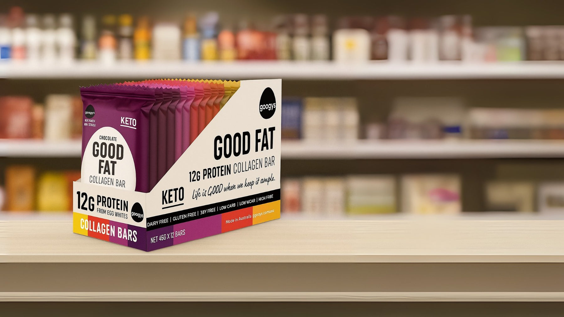 Googys Good Fat Collagen Bar Mixed 45g x 12 Display